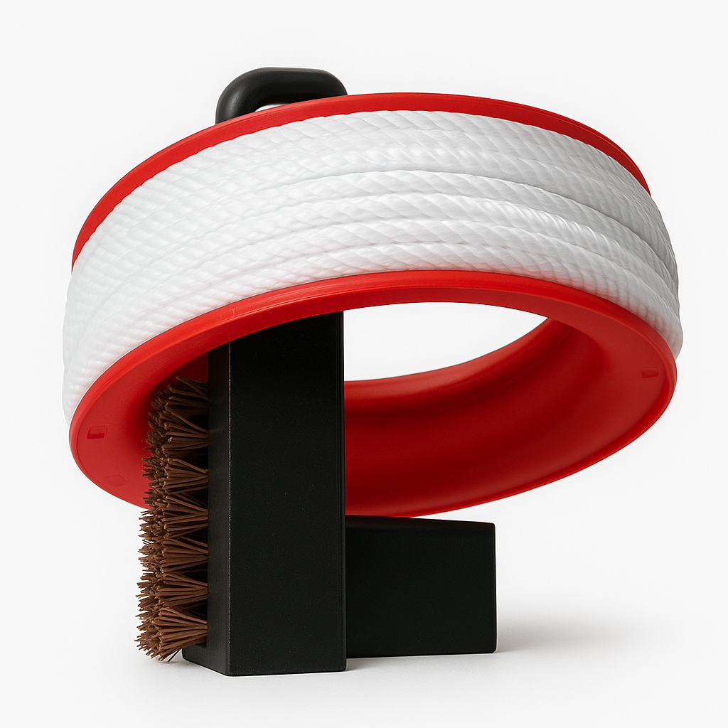 This Calling Thread is an essential falconry accessory, designed for precise and reliable communication during bird training or field activity. Wound securely around a sturdy red base with an integrated brush section and carrying handle, this tool ensures easy unwinding, tangle-free use, and efficient storage.