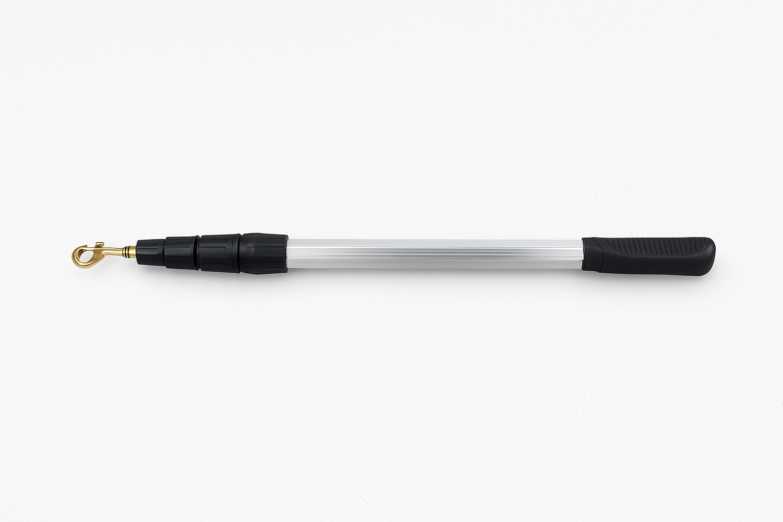 This durable telescopic hook rod is designed for safe and efficient handling of falcons and gear. Made with a lightweight aluminum body and a comfortable grip, it features an extendable mechanism reaching up to 132 cm and retracting to a compact 59 cm for easy portability.